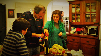 a família da D. Lurdes a comer chícharos com “couves miudinhas”